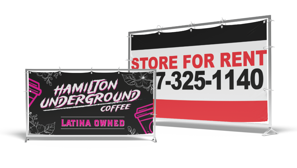 Get a banner made for your business or event, from hanging to standing, to small or larger banners, we got you covered.